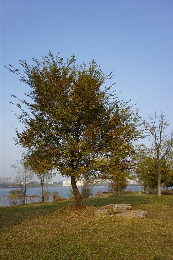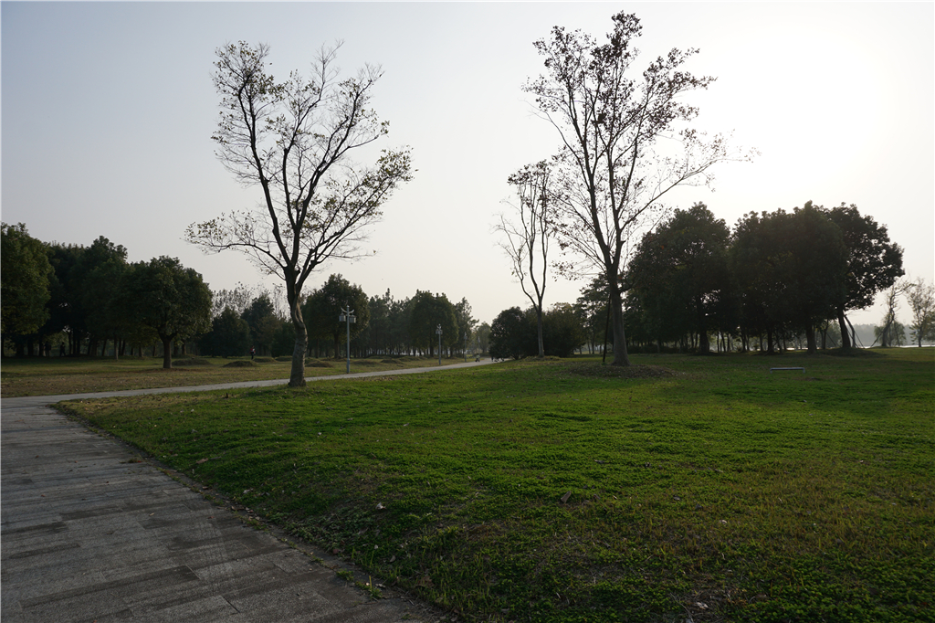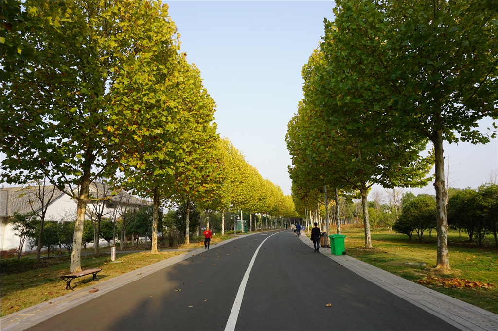 但是到了后发现,除了一条主游路边有一排梧桐行道树外,其他种的树木、植被到如今深秋(不对,昨天好像是立冬)都还是一片郁郁葱葱!